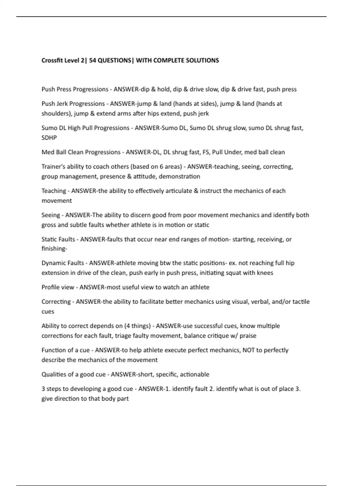 Crossfit Level 2| 54 QUESTIONS| WITH COMPLETE SOLUTIONS