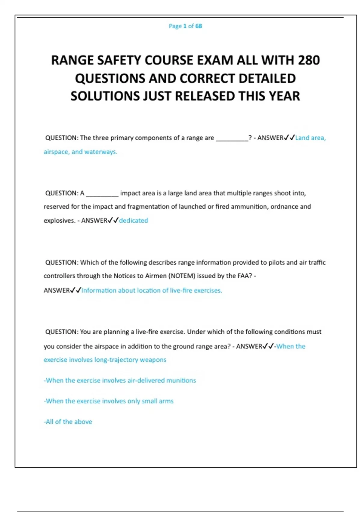 RANGE SAFETY COURSE EXAM ALL WITH 280