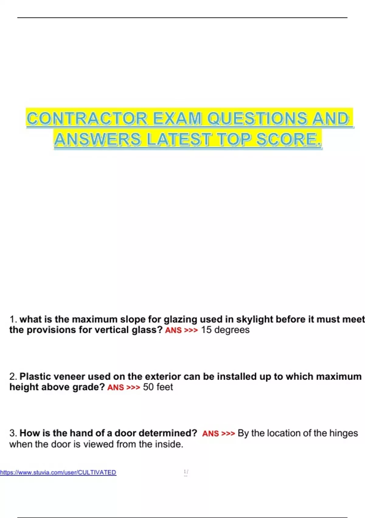 CONTRACTOR EXAM QUESTIONS AND ANSWERS LATEST TOP SCORE.