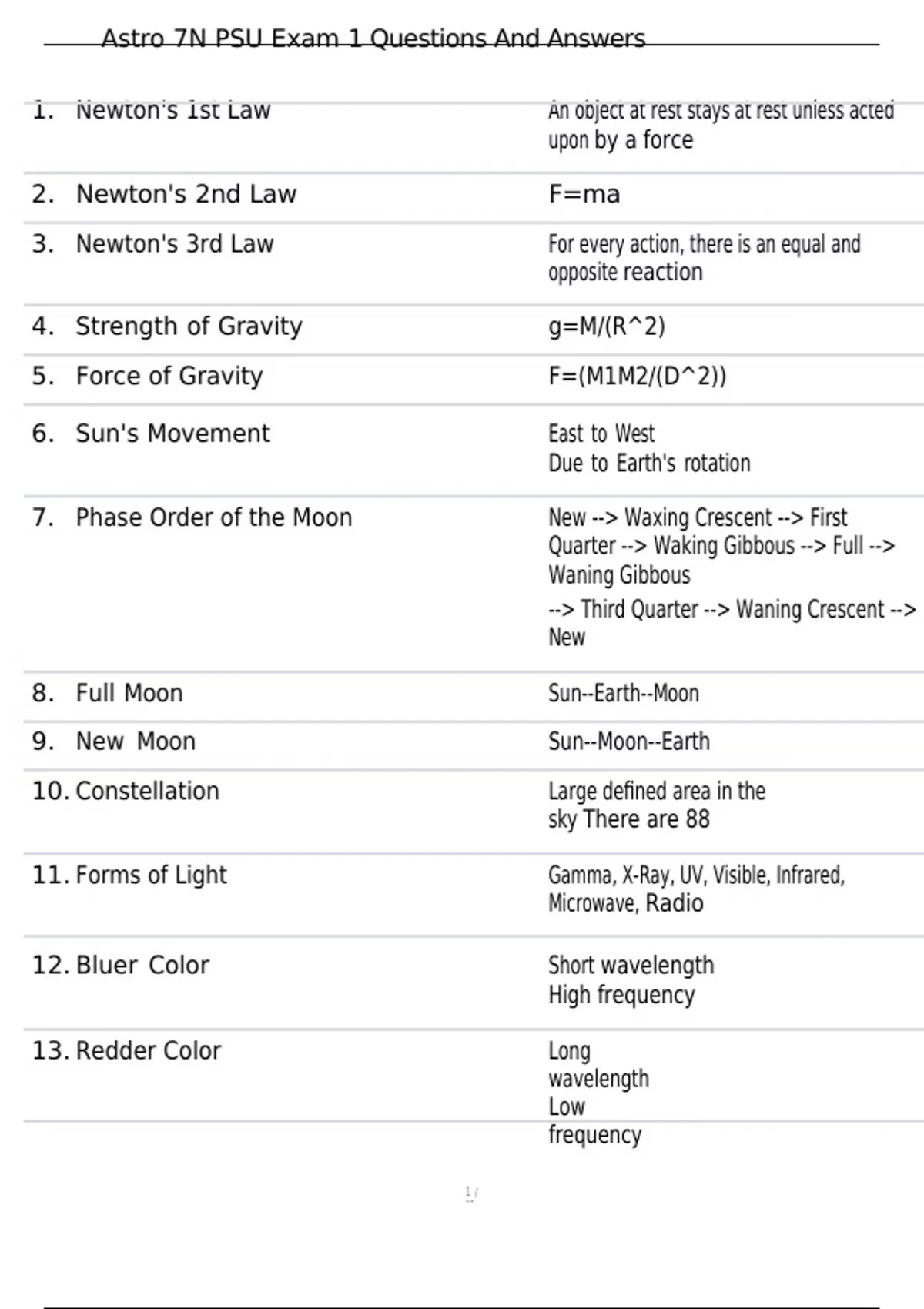 7. Phase Order of the Moon New --> Waxing Crescent --> First