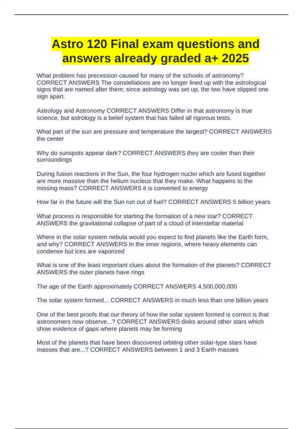 Astro 120 Final exam questions and answers already graded a+ 2025
