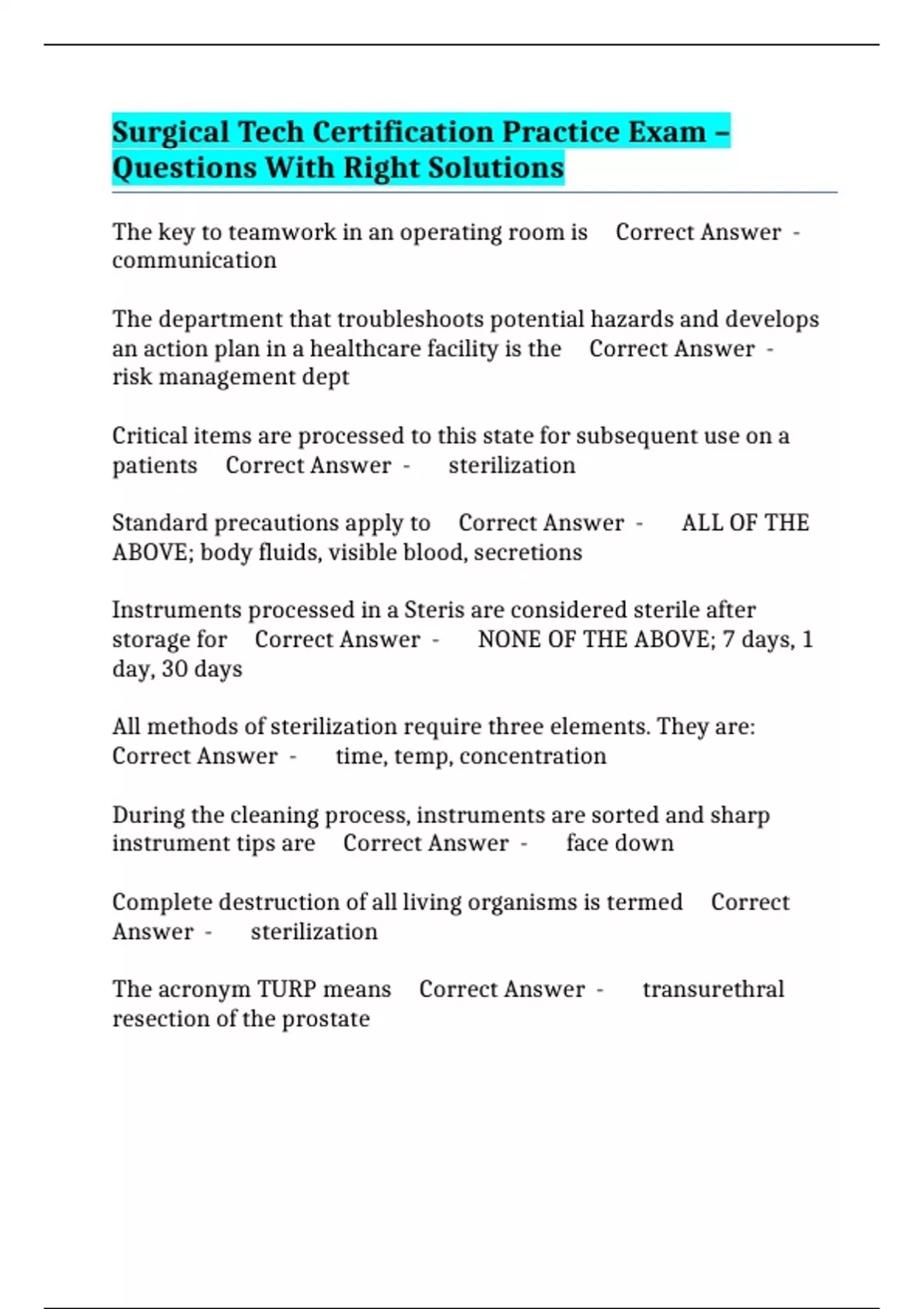 Answer - sterilization