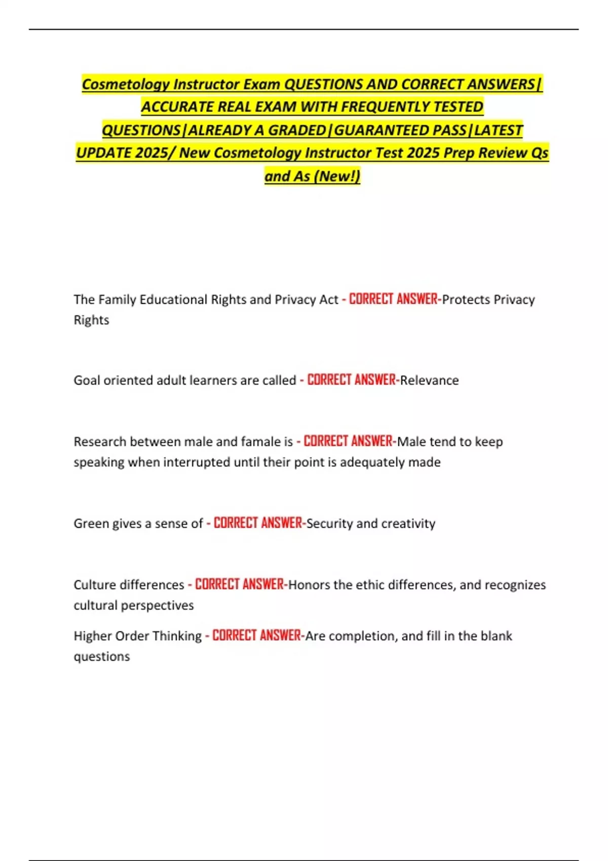 UPDATE 2025/ New Cosmetology Instructor Test 2025 Prep Review Qs