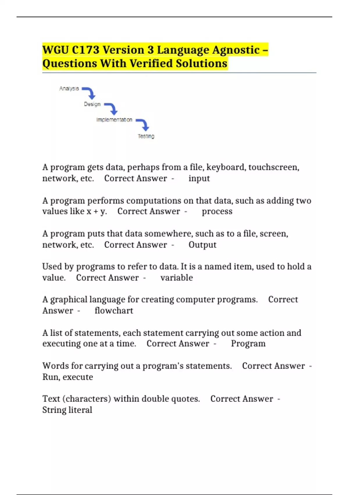 WGU C173 Version 3 Language Agnostic – Questions With Verified Solutions