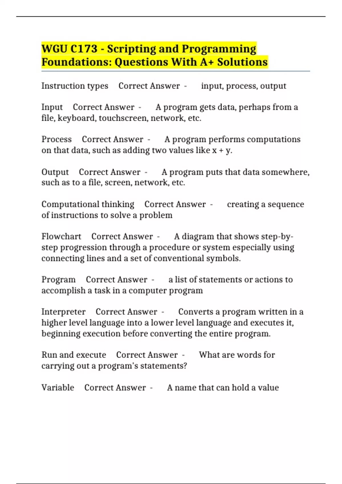 WGU C173 - Scripting and Programming Foundations: Questions With A+ Solutions