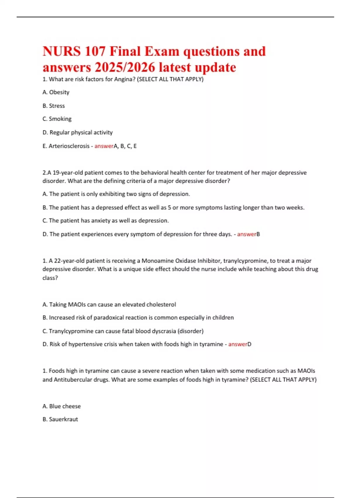 1. The nurse is caring for a patient taking a Monoamine Oxidase Inhibitor (MAOI). The nurse should