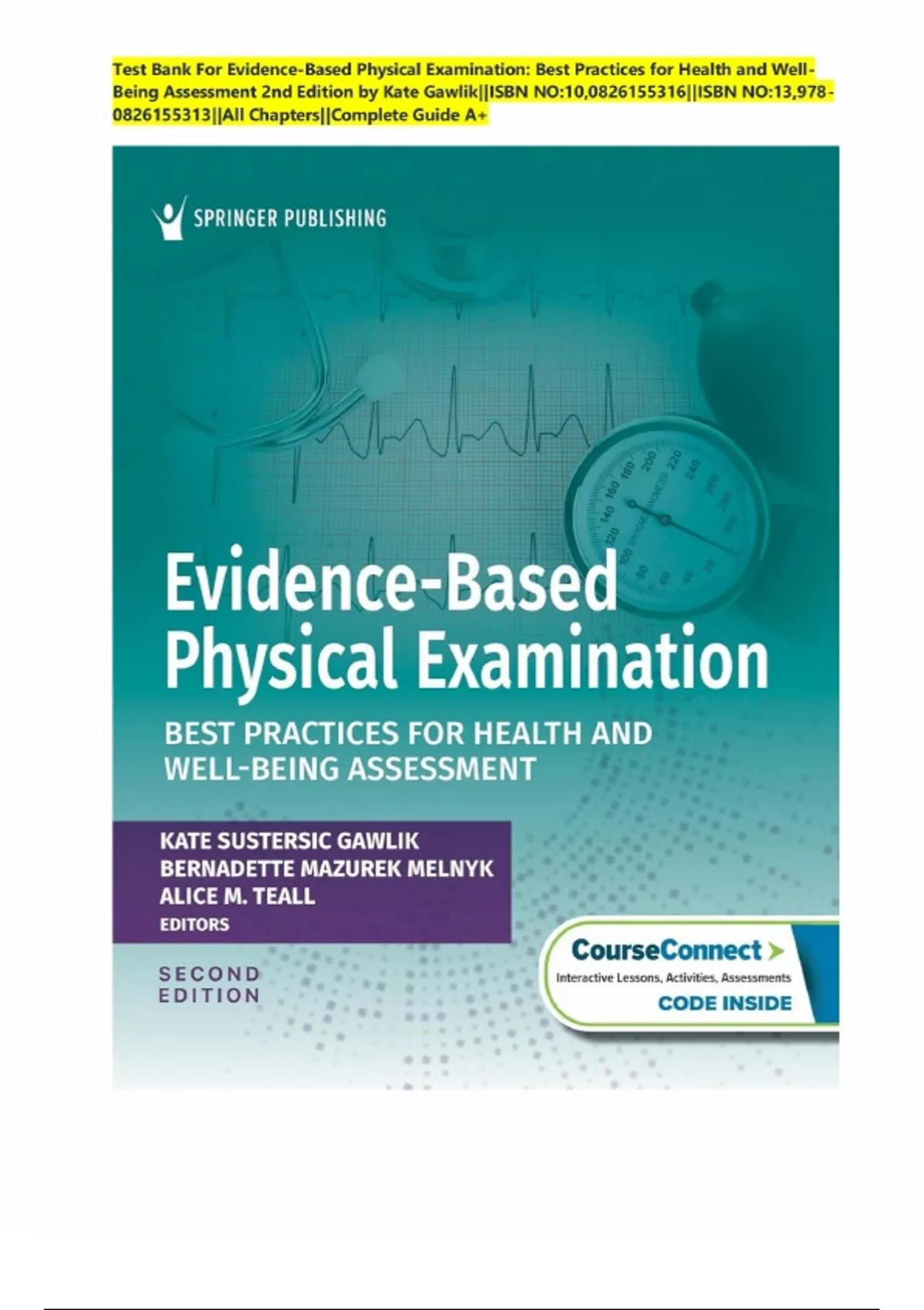Test Bank For Evidence-Based Physical Examination: Best Practices for Health and Well-Being Assessment 2nd Edition by Kate Gawlik||ISBN NO:10,0826155316||ISBN NO:13,978-0826155313||All Chapters||Complete Guide, Already Graded A+ |100% PASS