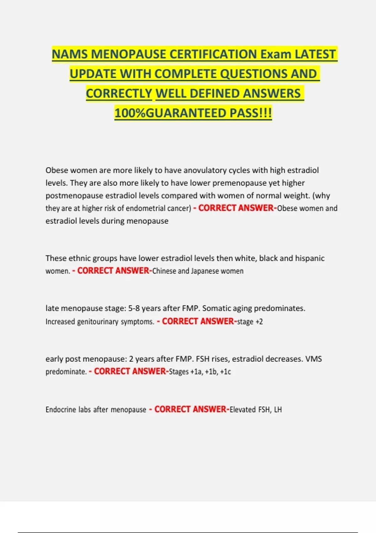 NAMS MENOPAUSE CERTIFICATION Exam LATEST