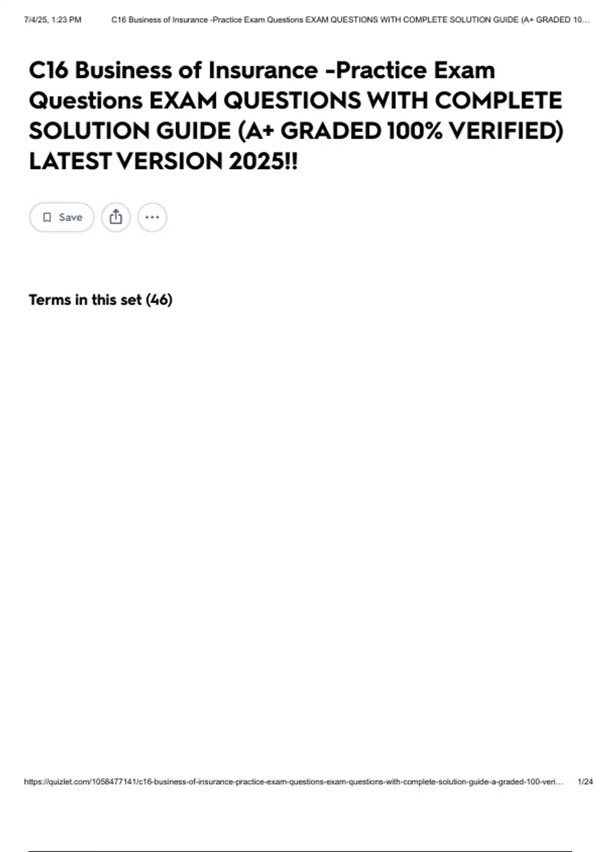 , 7/4/25, 1:23 PM C16 Business of Insurance -Practice Exam Questions EXAM QUESTIONS WITH COMPLETE SOLUTION GUIDE (A+ GRADED 10…