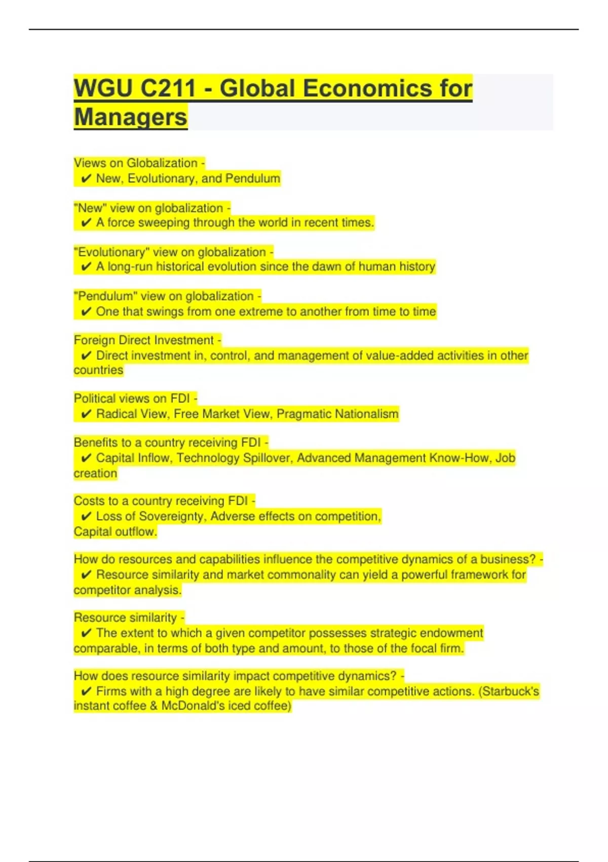 WGU C211 - Global Economics for