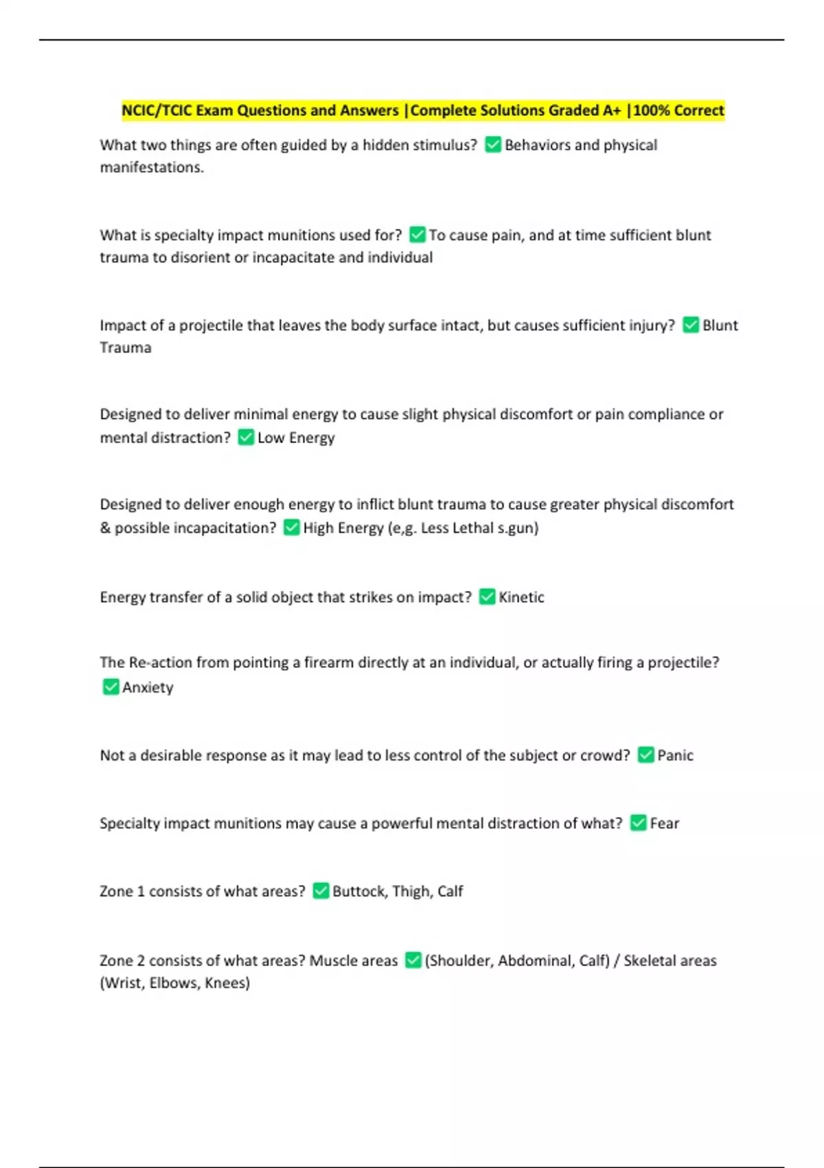 NCIC/TCIC Exam Questions and Answers |Complete Solutions Graded A+ |100% Correct