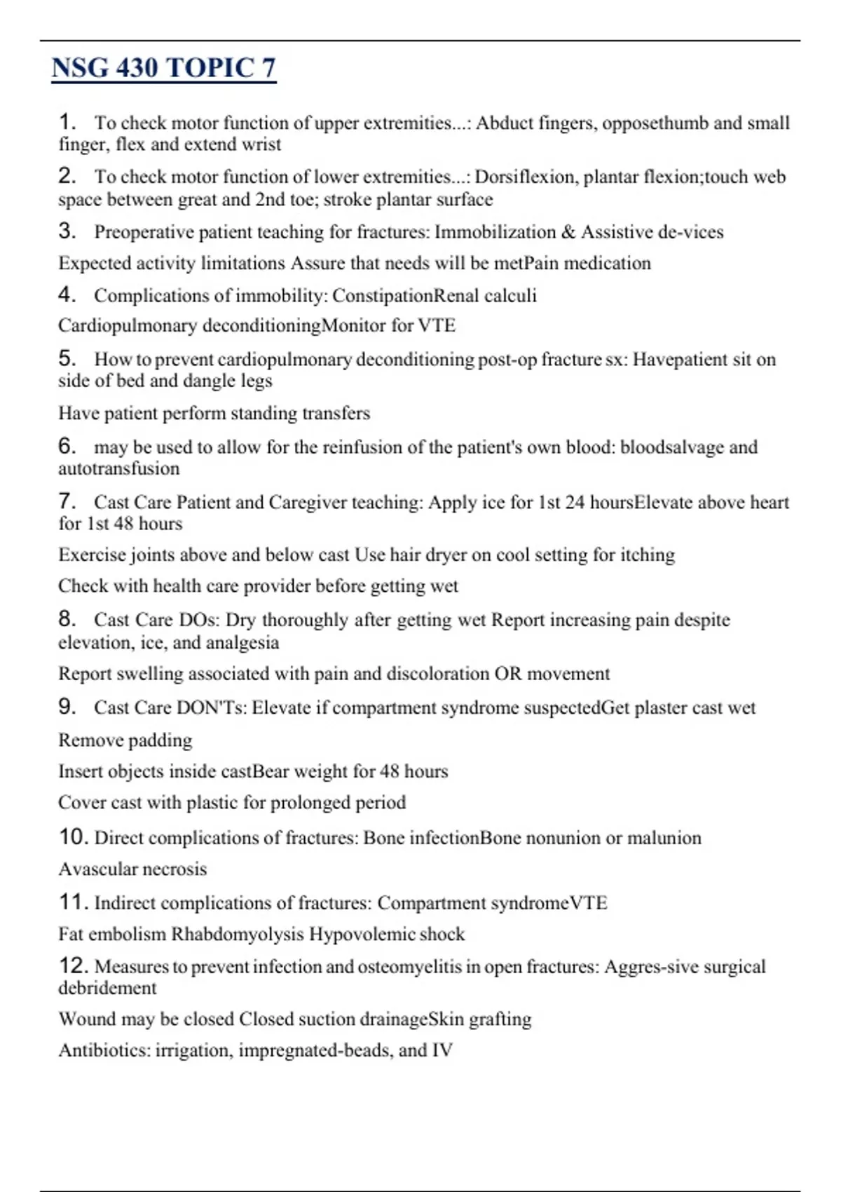 10. Direct complications of fractures: Bone infectionBone nonunion or malunion