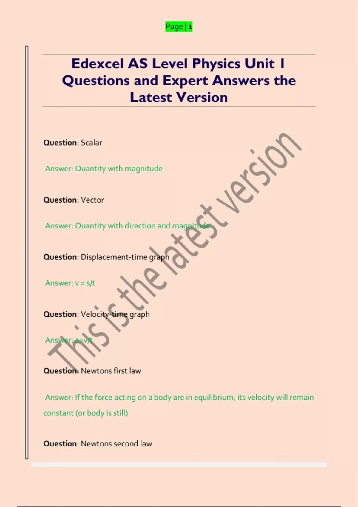 Edexcel AS Level Physics Unit 1 Questions and Expert Answers the Latest Version