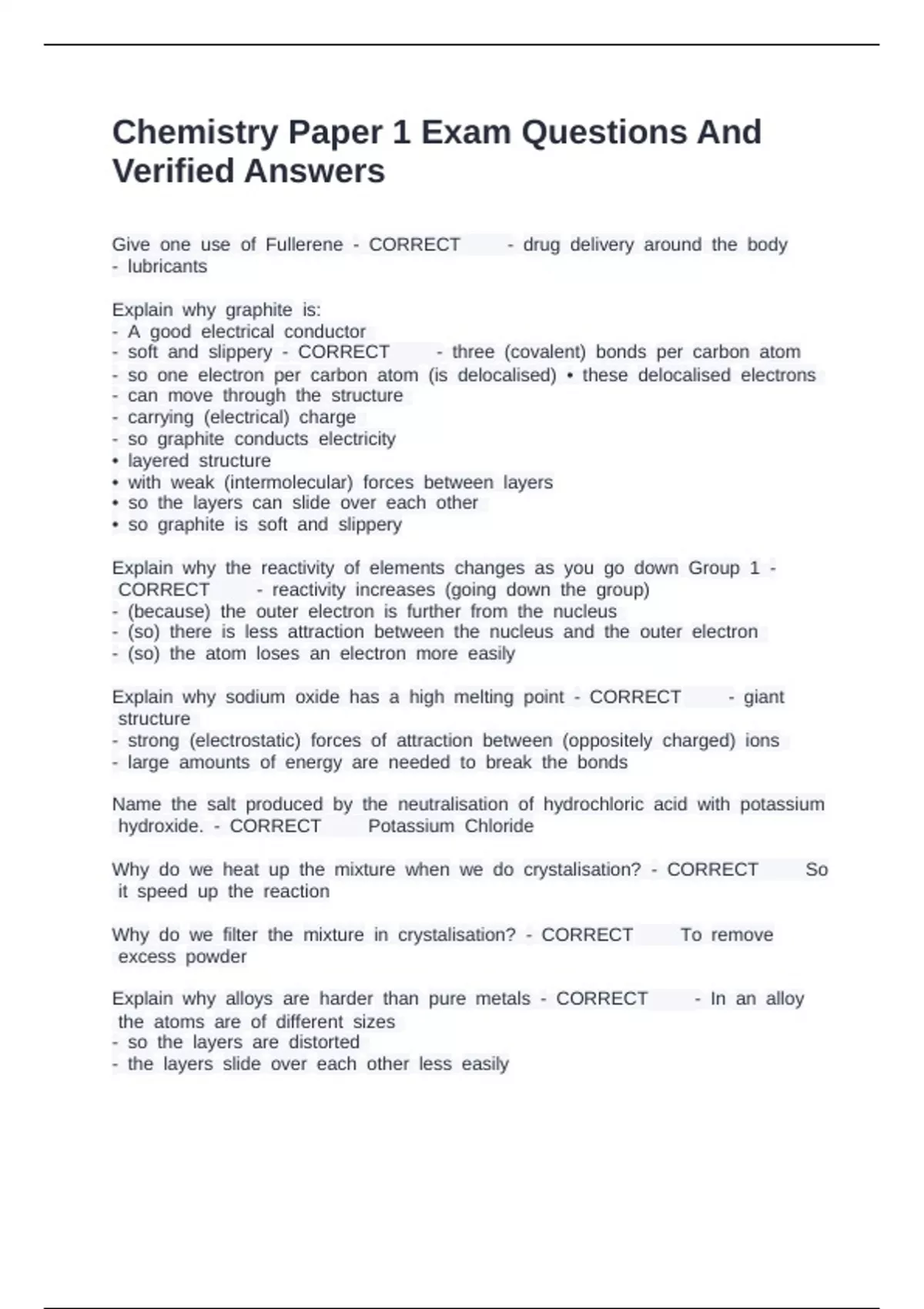 Chemistry paper 1