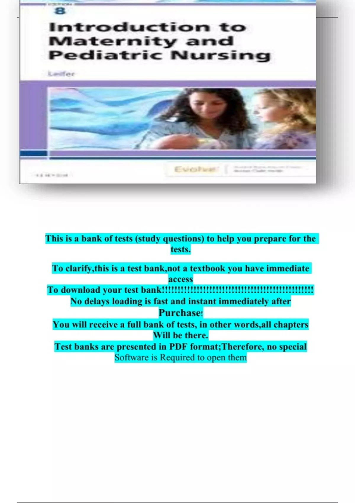 , INTRODUCTION TO MATERNITY AND PEDIATRIC NURSING 8TH EDITION LEIFER TEST BANK
