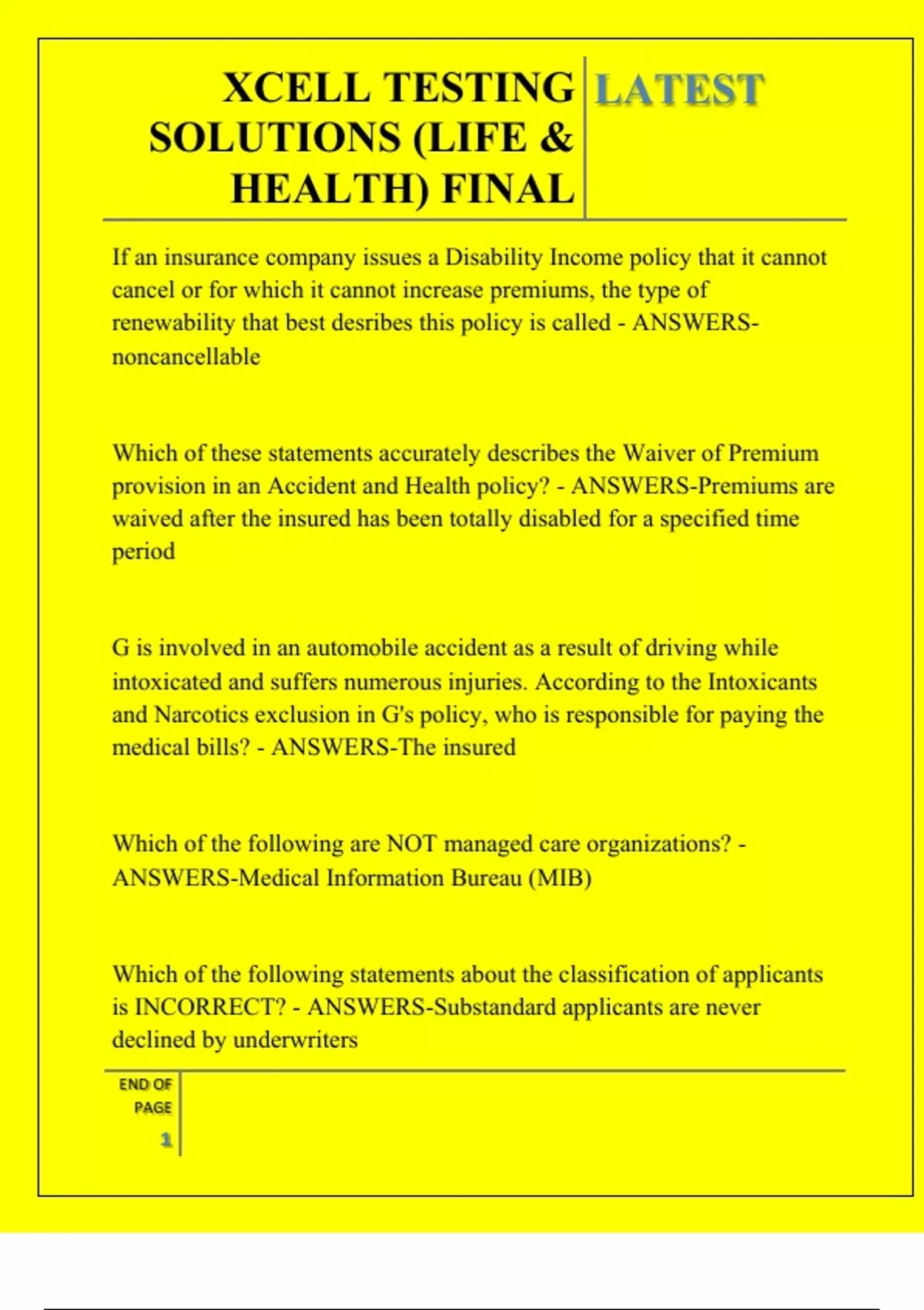 provision in an Accident and Health policy? - ANSWERS-Premiums are