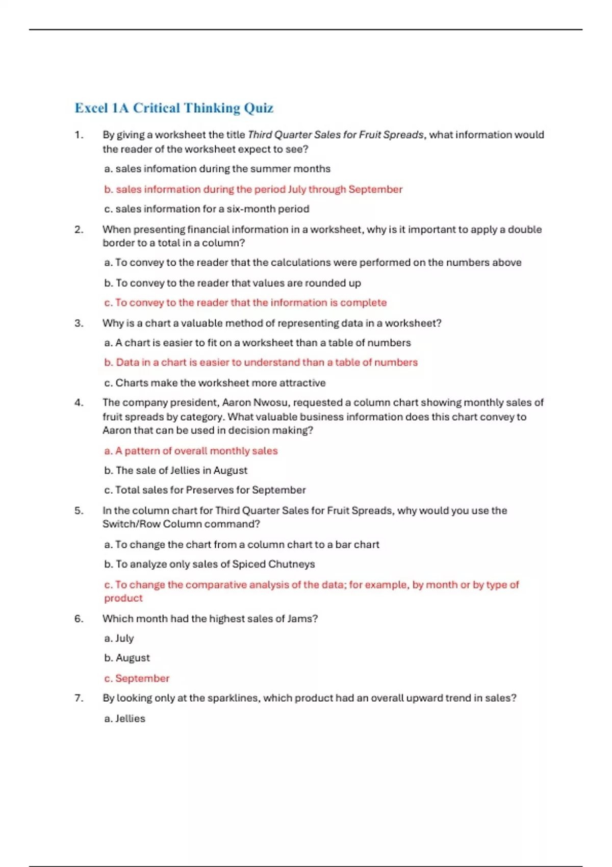 1. By giving a worksheet the title Third Quarter Sales for Fruit Spreads, what information would