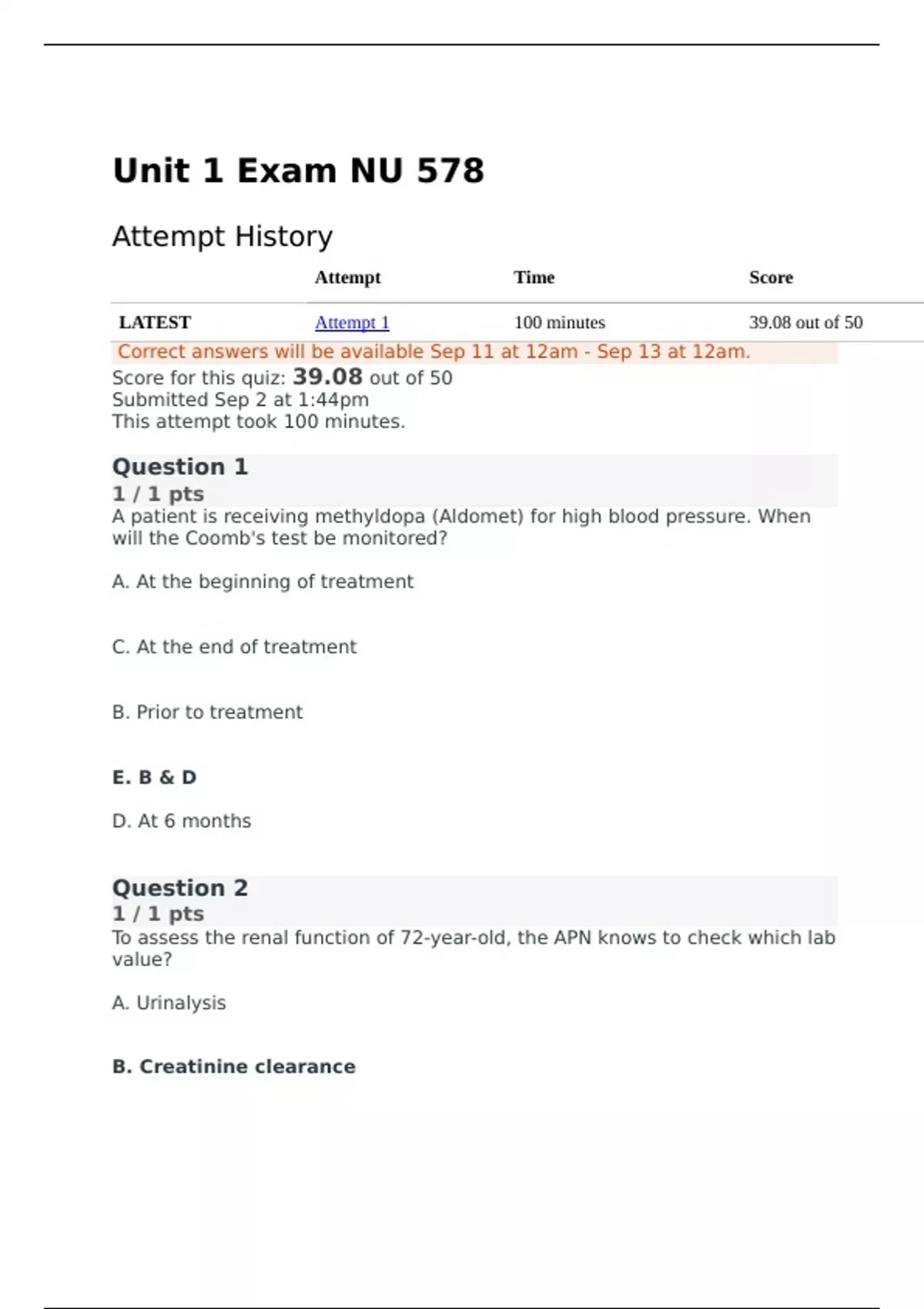 Correct answers will be available Sep 11 at 12am - Sep 13 at 12am.