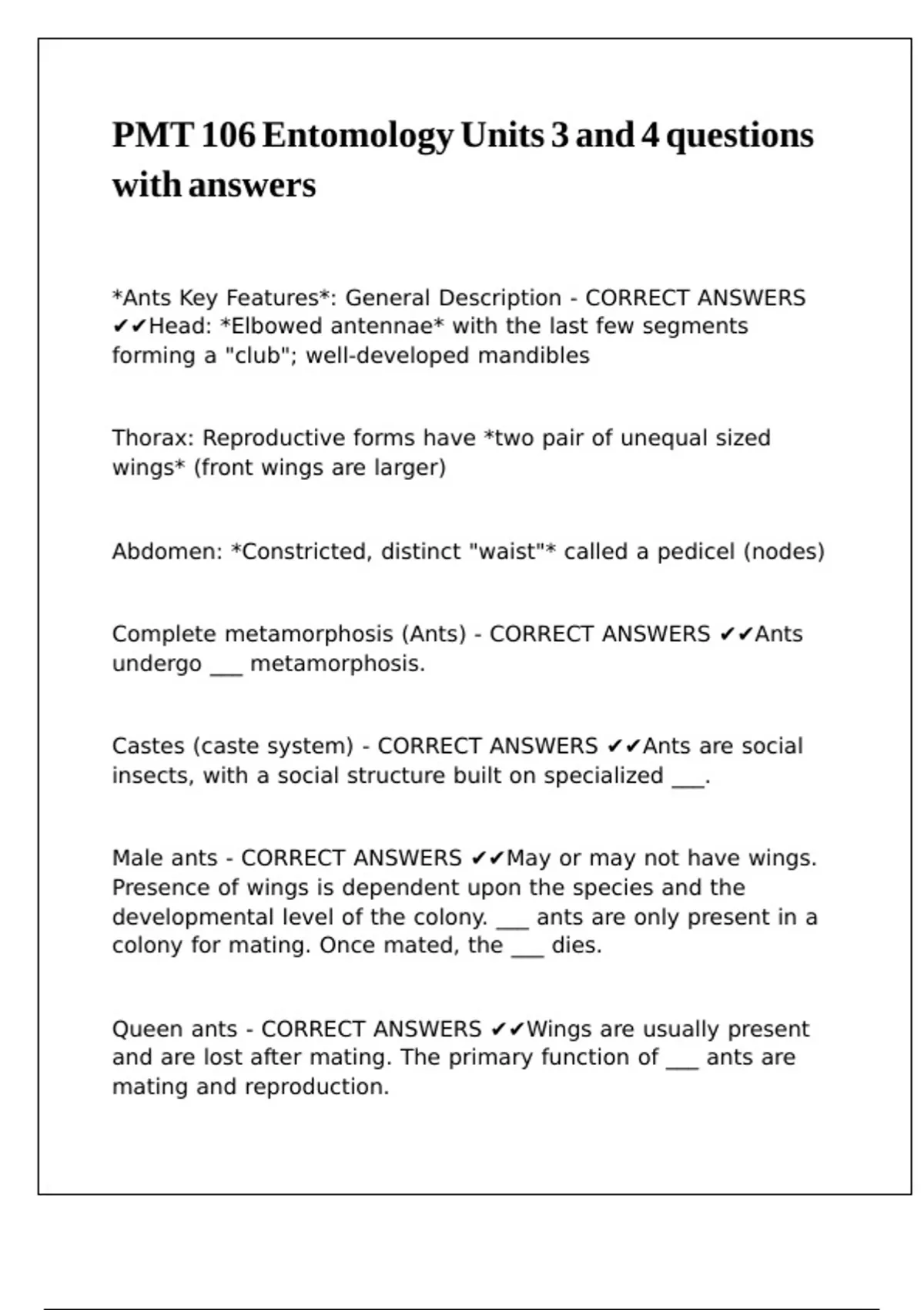 PMT 106 Entomology Units 3 and 4 questions with answers
