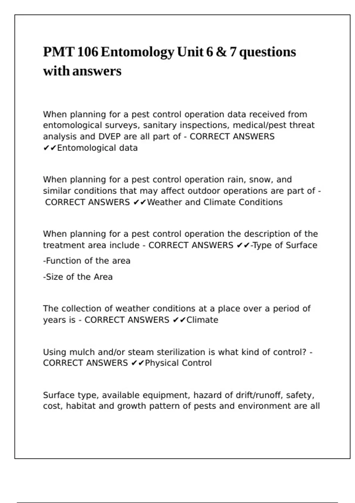 PMT 106 Entomology Unit 6 & 7 questions with answers