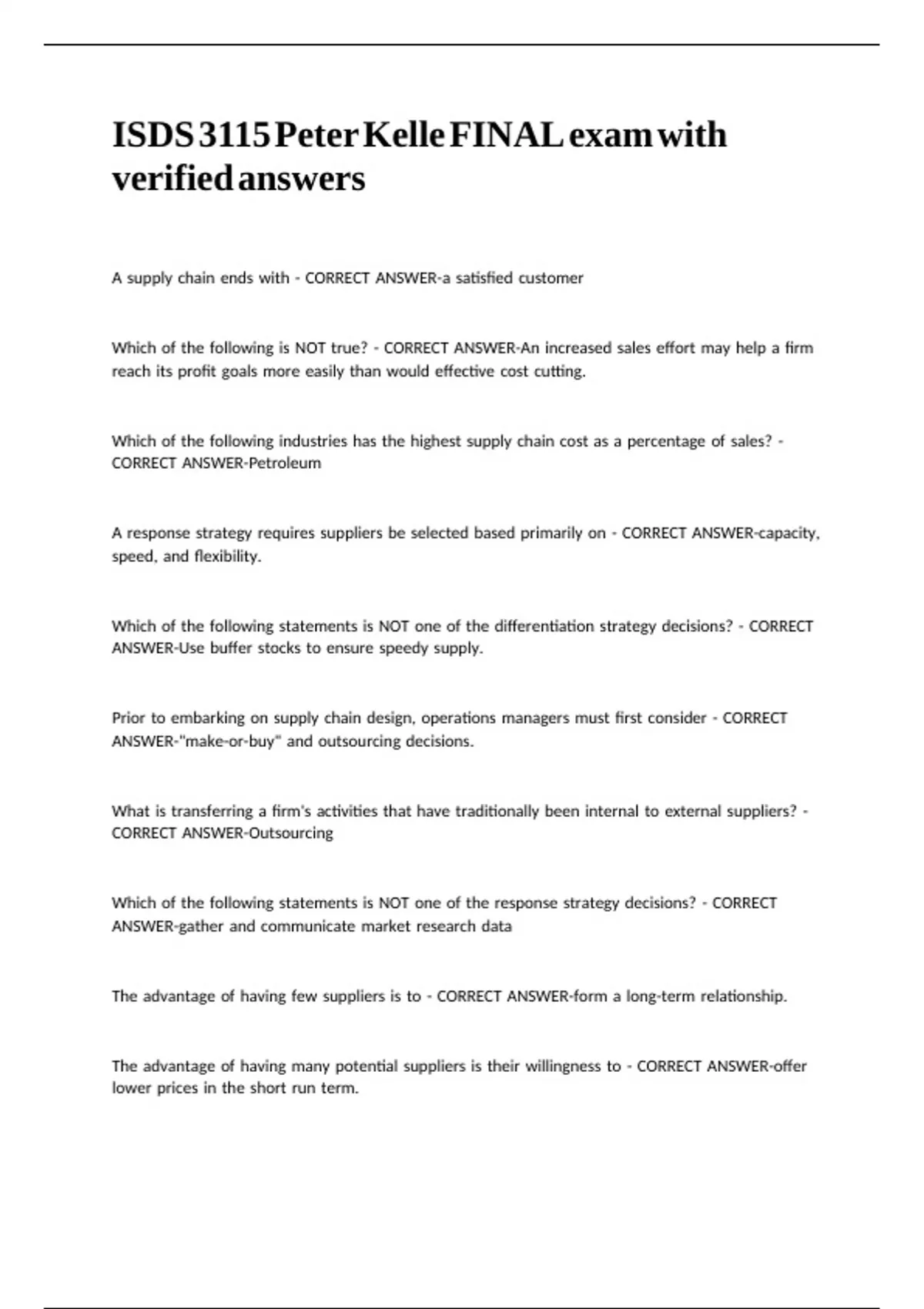 ISDS 3115 Peter Kelle FINAL exam with verified answers