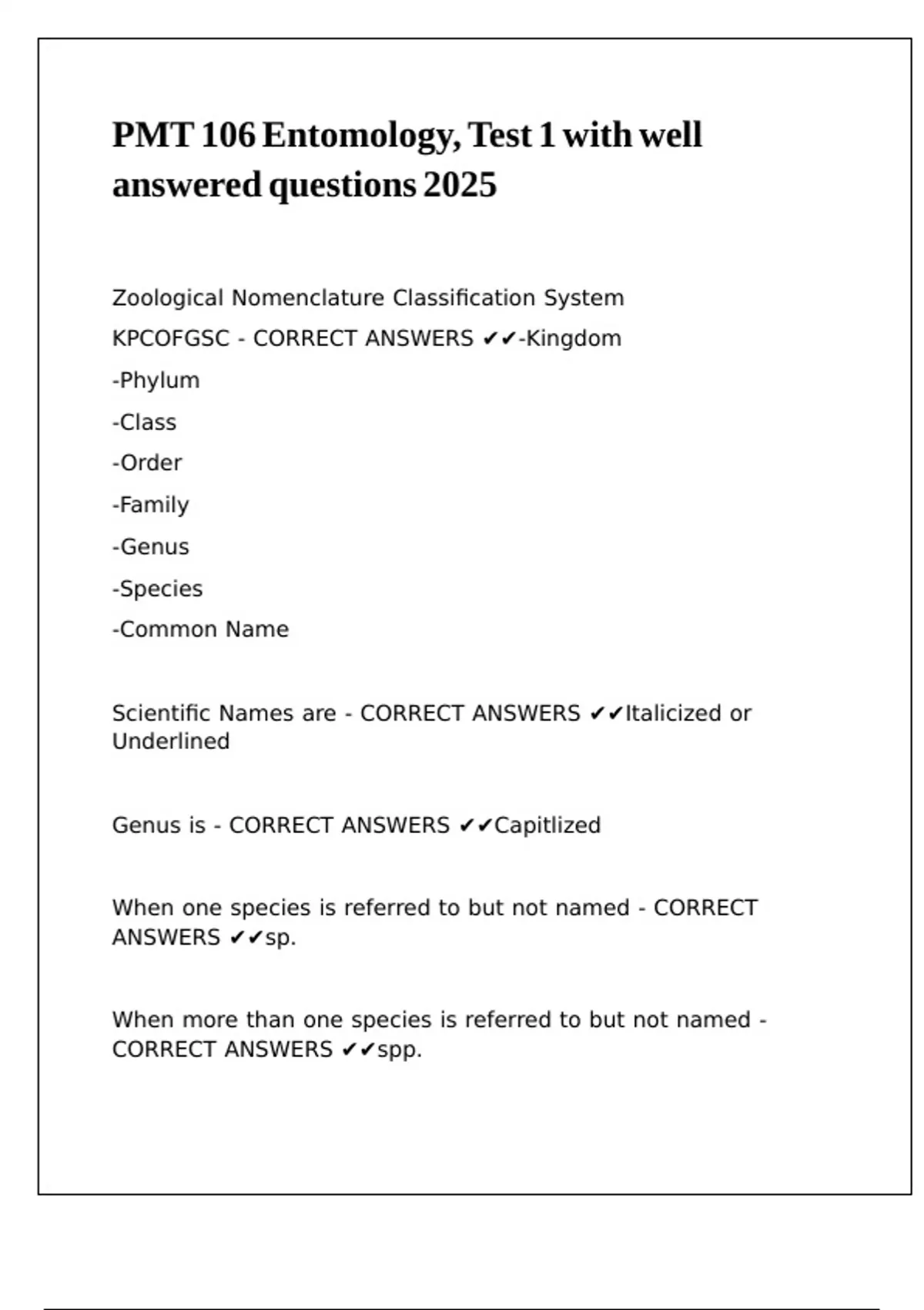 PMT 106 Entomology, Test 1 with well answered questions 2025