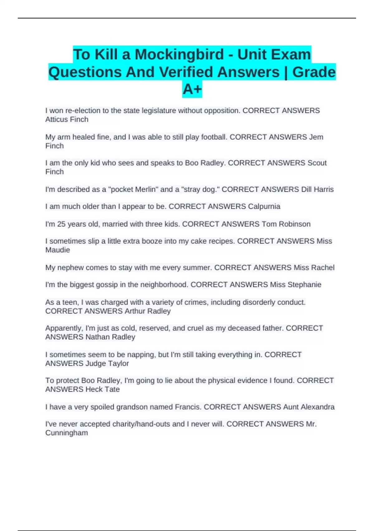 I am much older than I appear to be. CORRECT ANSWERS Calpurnia
