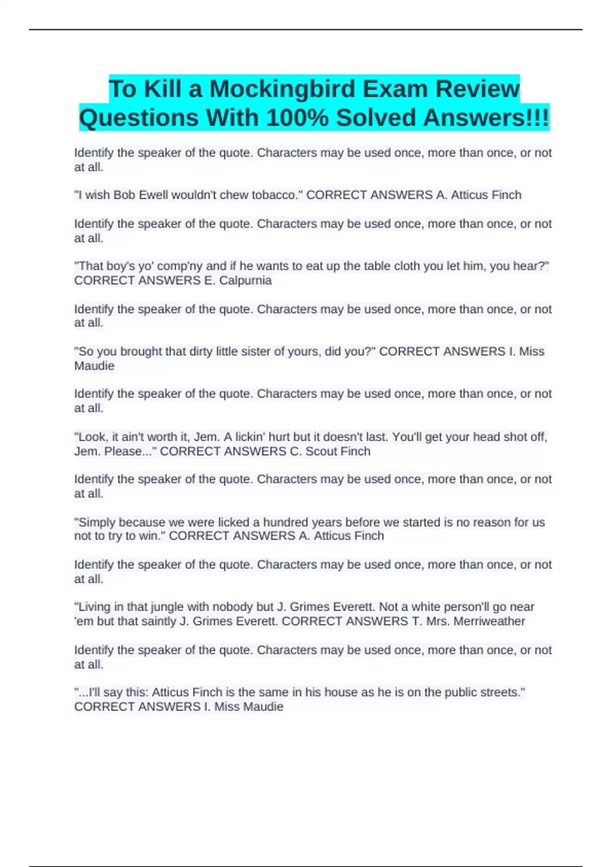 CORRECT ANSWERS I. Miss Maudie