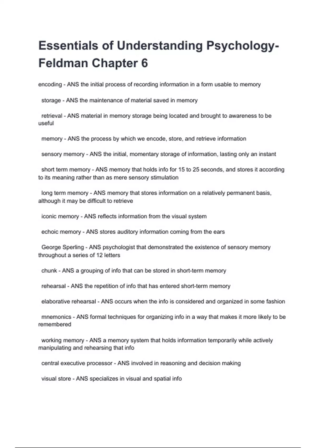 long term memory - ANS memory that stores information on a relatively permanent basis,