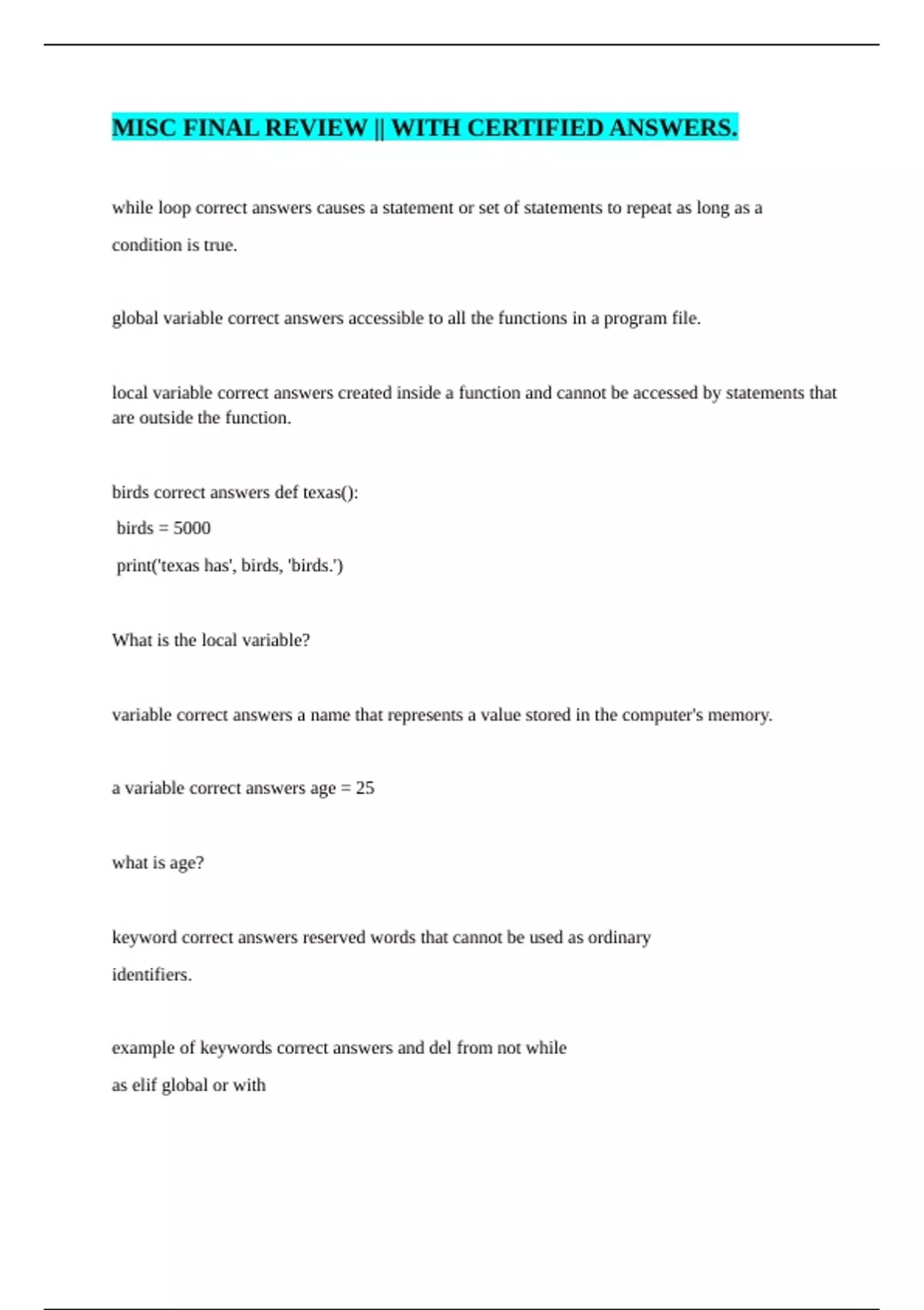 MISC FINAL REVIEW || WITH CERTIFIED ANSWERS.
