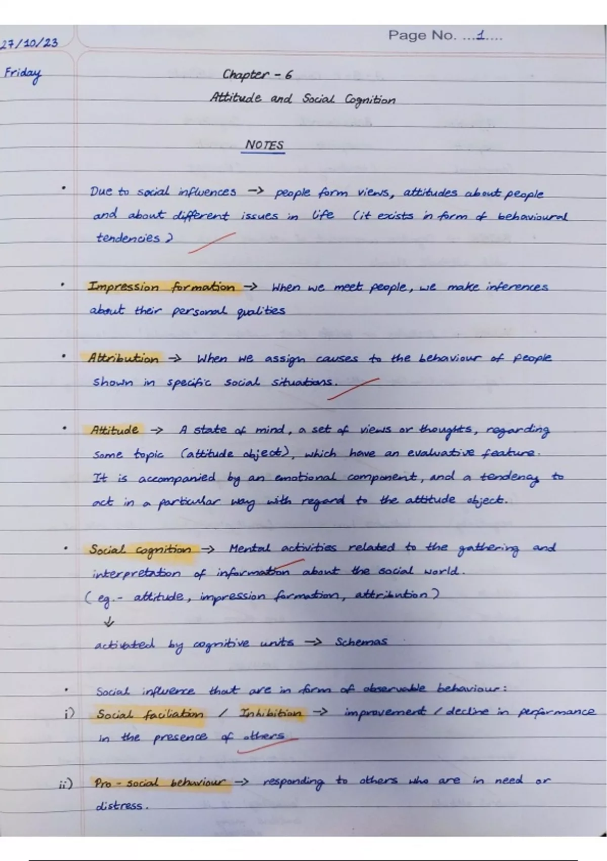 Notes for the NCERT psychology 12th grade chapter "attitude and social cognition".