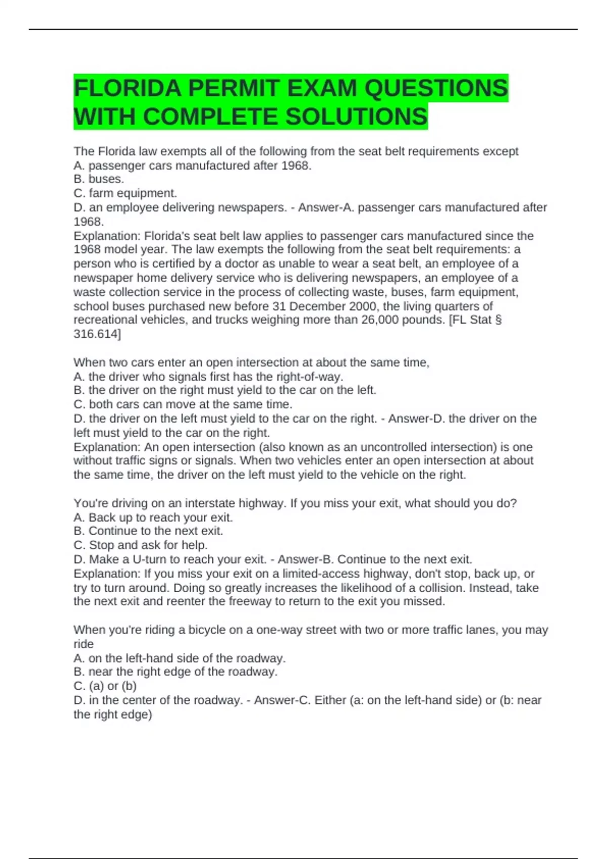 FLORIDA PERMIT EXAM QUESTIONS WITH COMPLETE SOLUTIONS