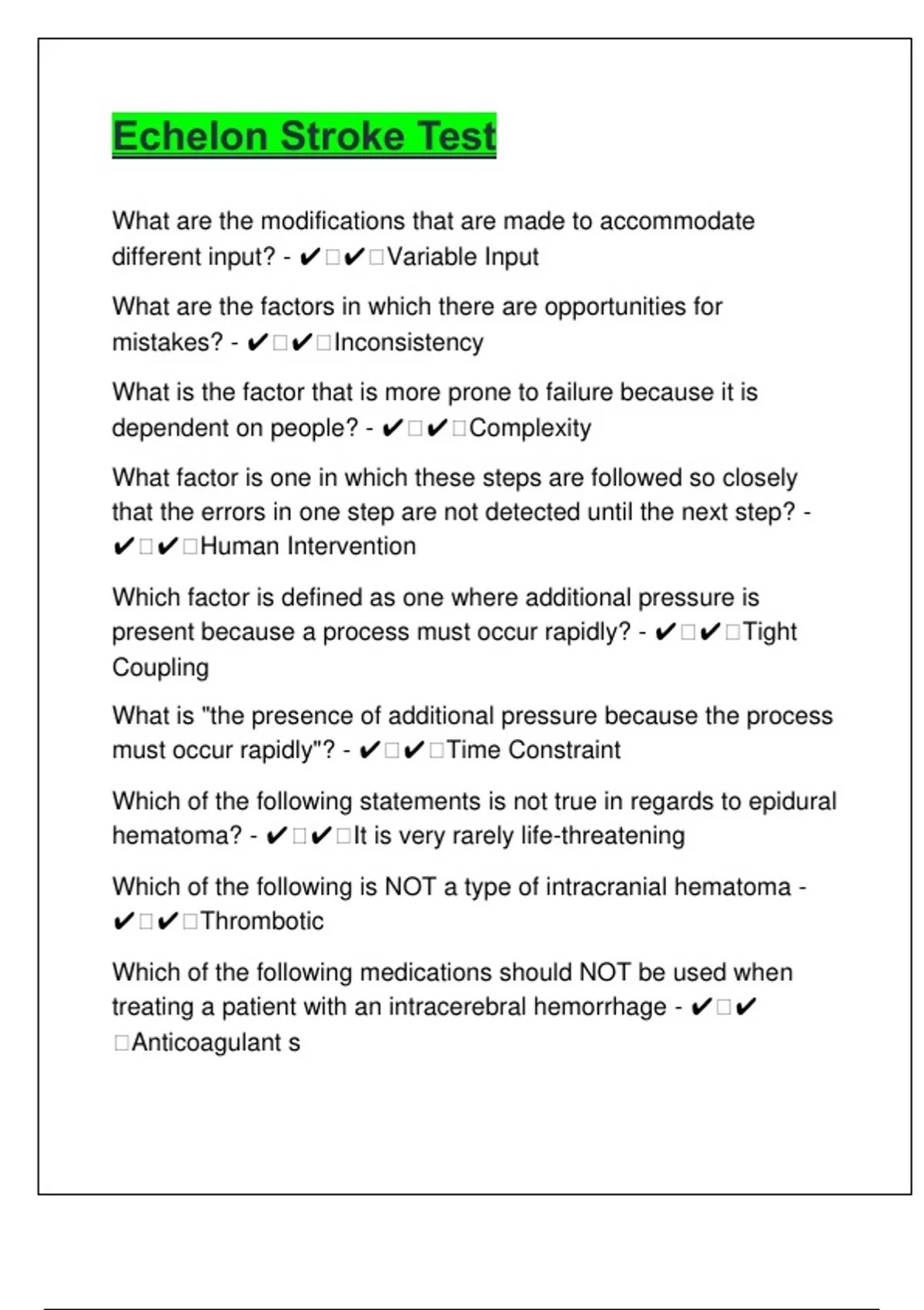 or major disability - ✔ ✔ Inteacerebral hemorrage
