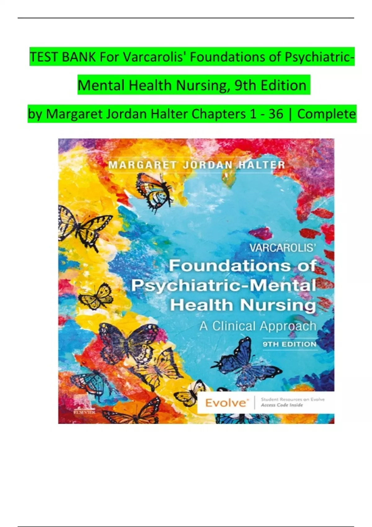 TEST BANK For Varcarolis' Foundations of PsychiatricMental Health Nursing, 9th Edition by Margaret Jordan Halter Chapters 1 - 36 | Complete