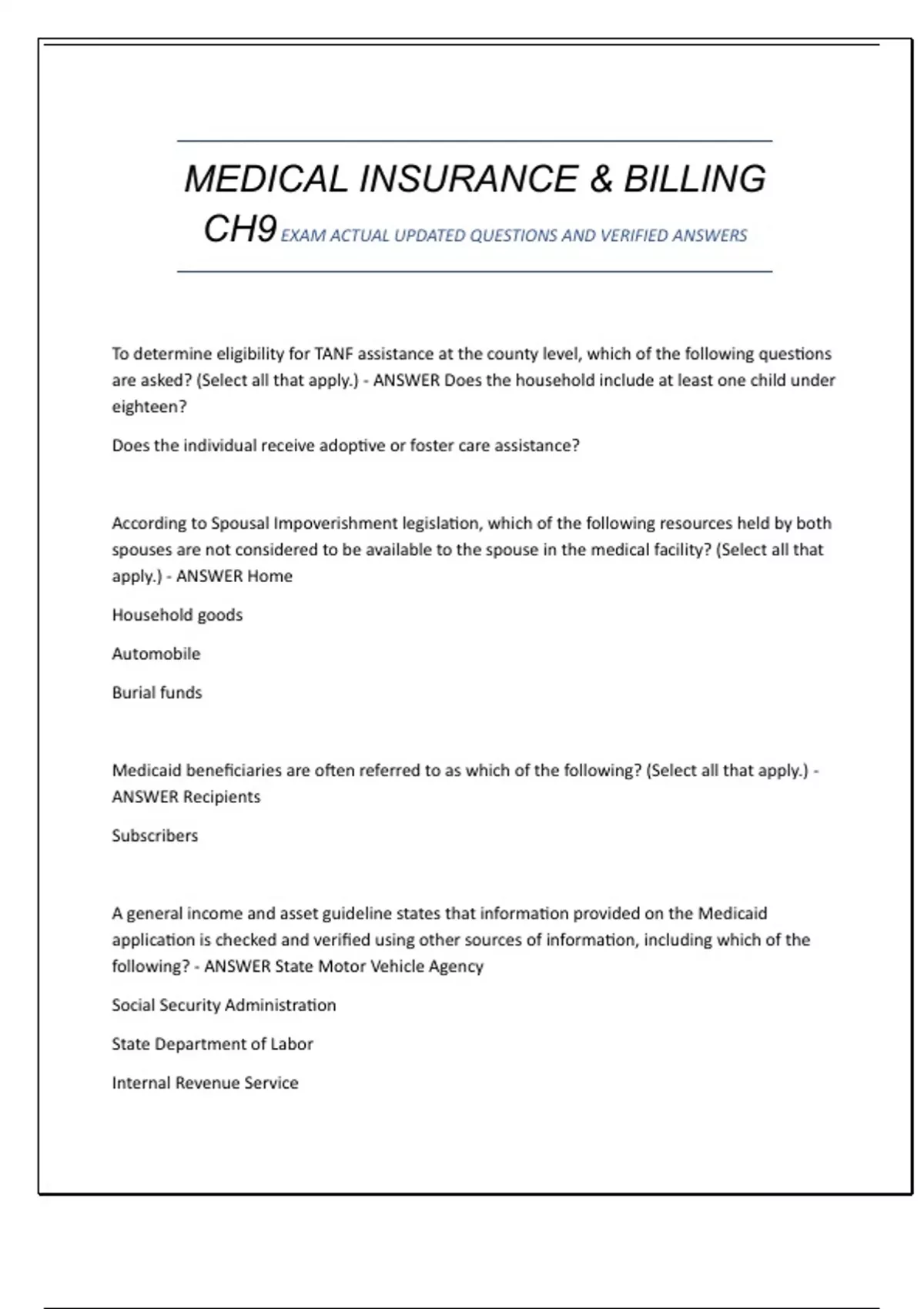 MEDICAL INSURANCE & BILLING CH9 EXAM ACTUAL UPDATED QUESTIONS AND VERIFIED ANSWERS