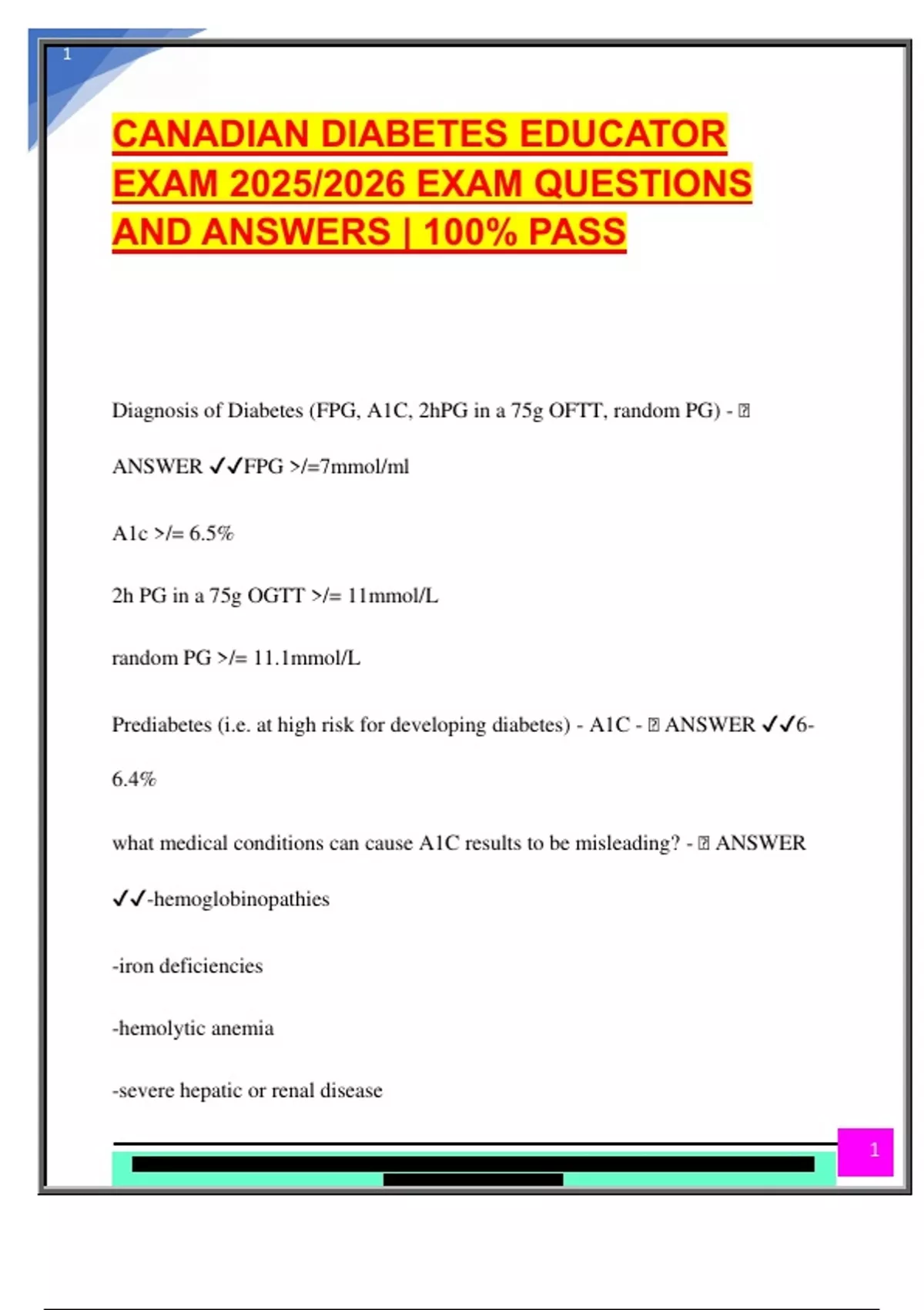 Diagnosis of Diabetes (FPG, A1C, 2hPG in a 75g OFTT, random PG) - 🧠