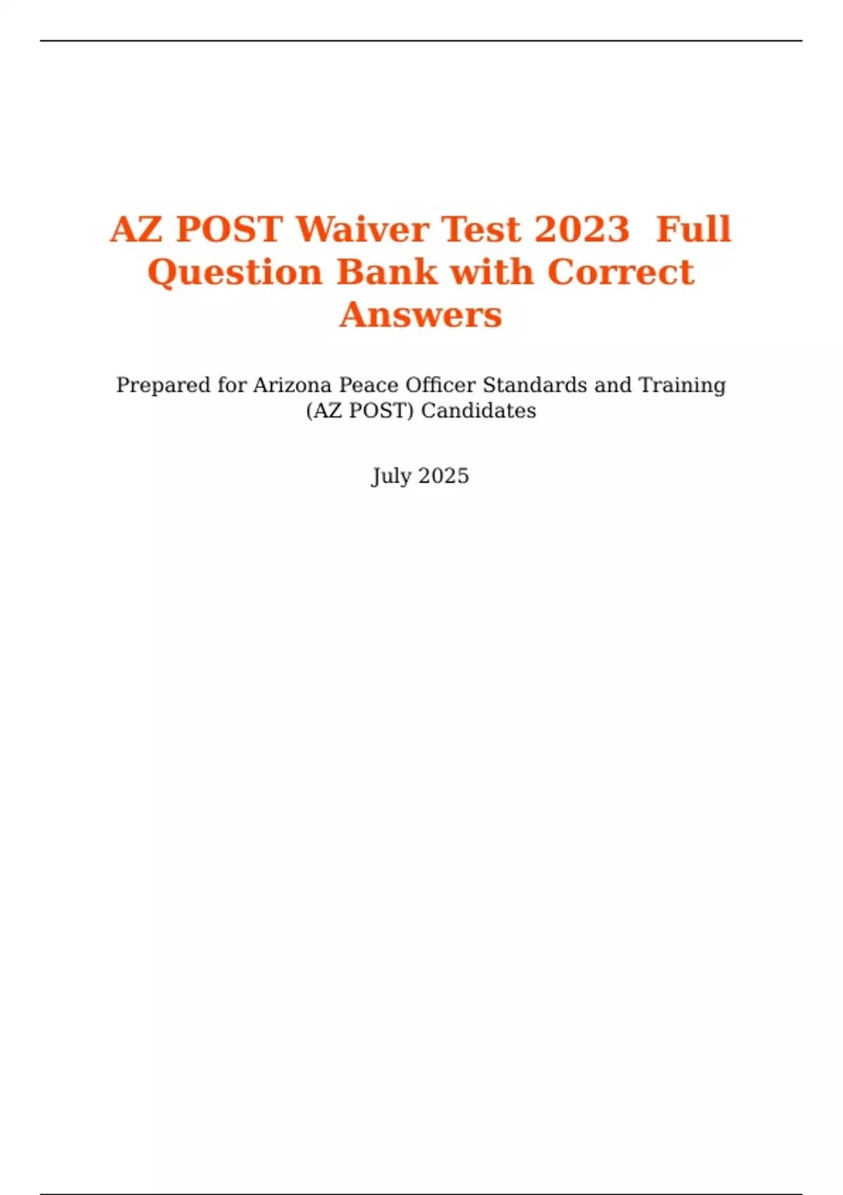 AZ POST Waiver Test 2023 Full Question Bank with Correct Answers Prepared for Arizona Peace Officer Standards and Training (AZ POST) Candidates July 2025