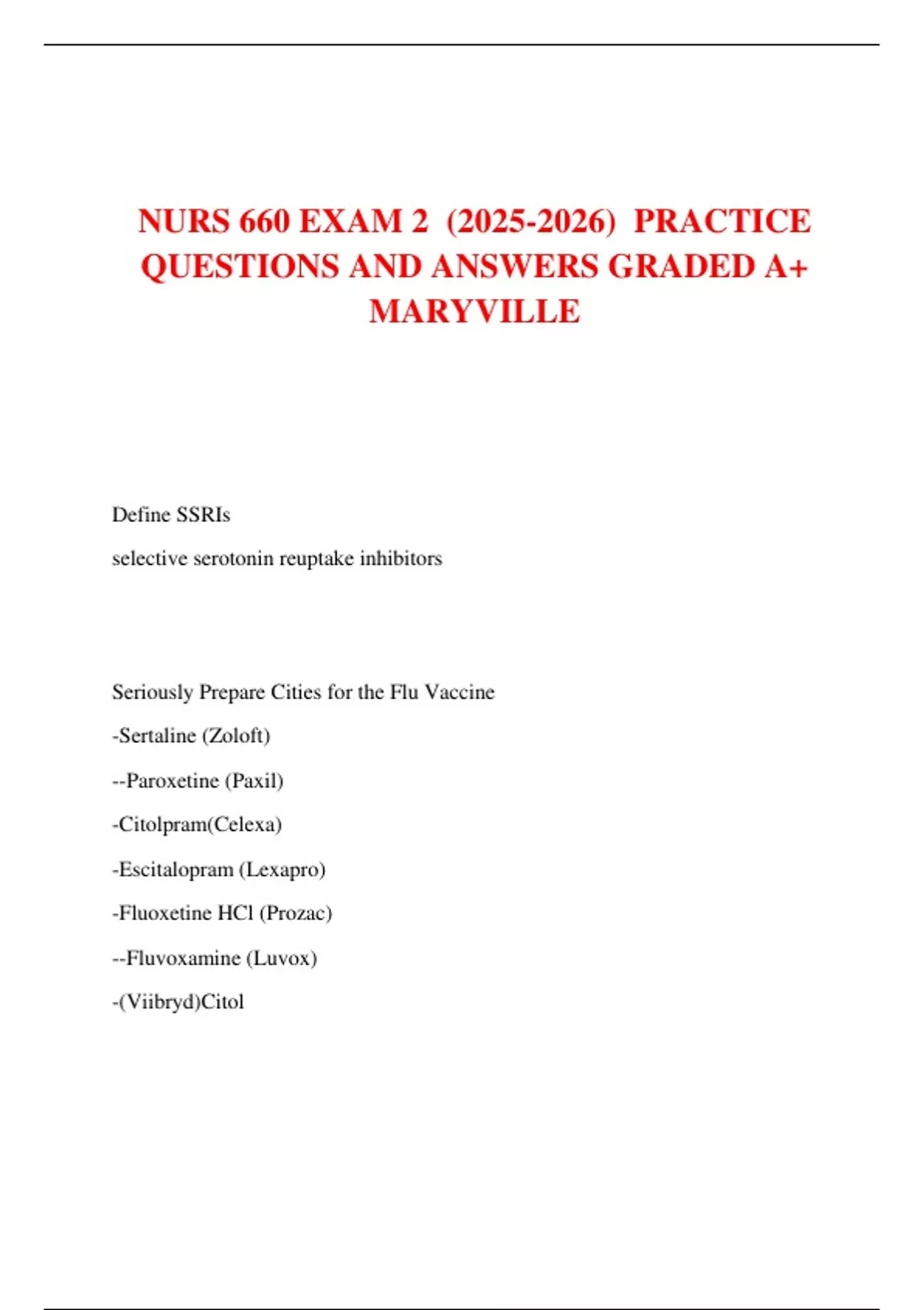 NURS 660 EXAM 2 () PRACTICE QUESTIONS AND ANSWERS GRADED A+ MARYVILLE