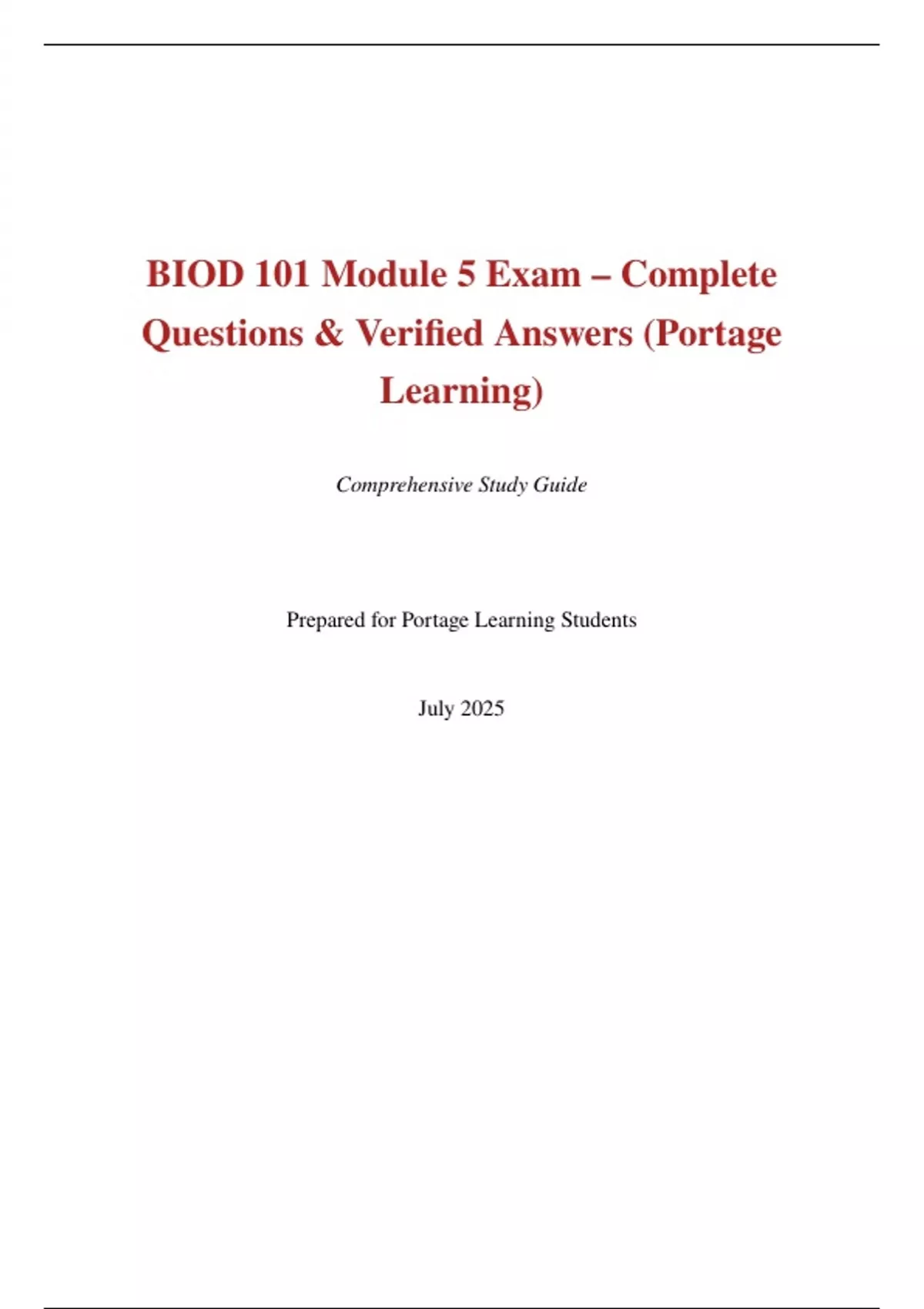 BIOD 101 Module 5 Exam – Complete Questions & Verified Answers (Portage Learning) Comprehensive Study Guide Prepared for Portage Learning Students July 2025