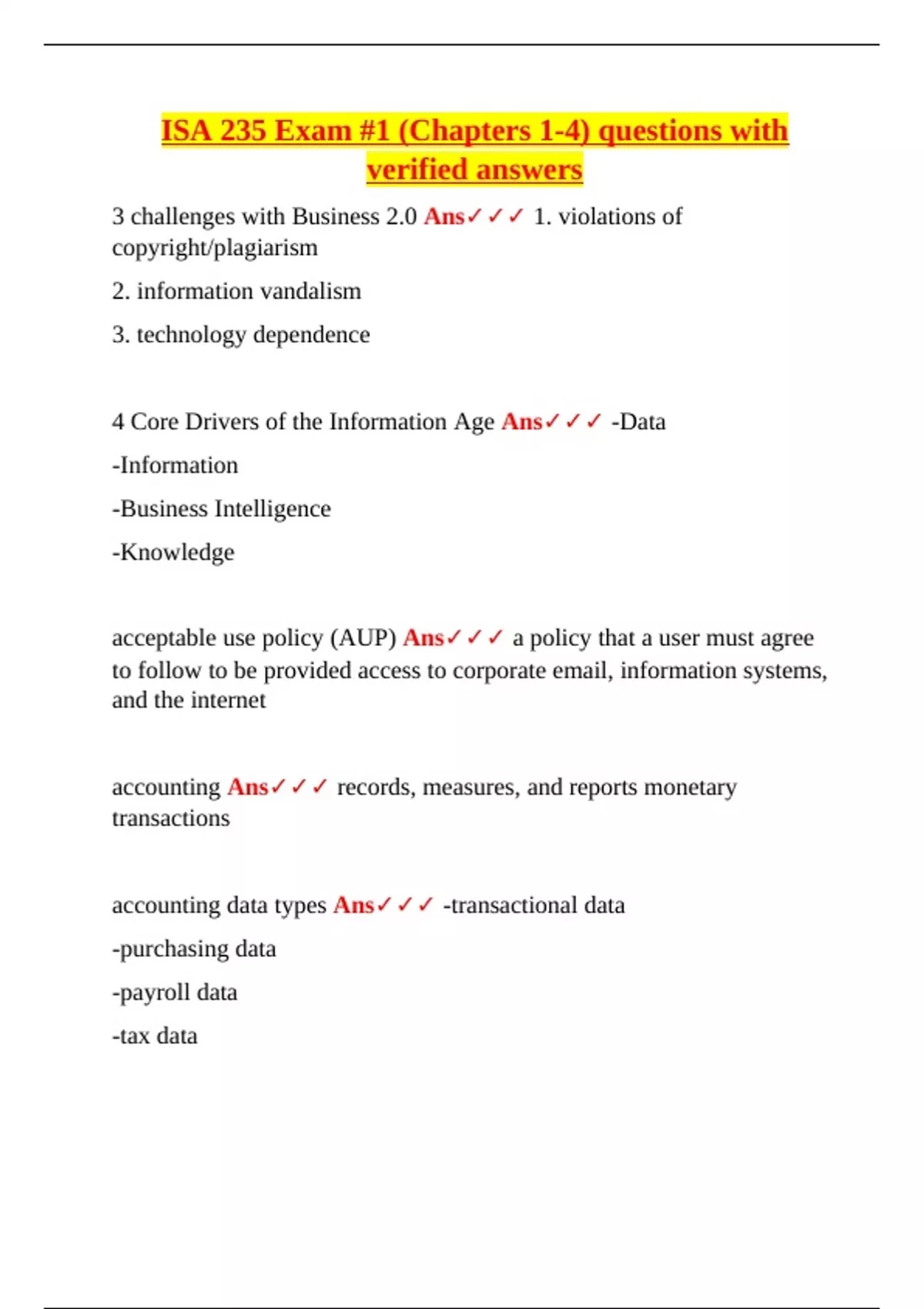 accounting data types Ans✓✓✓ -transactional data