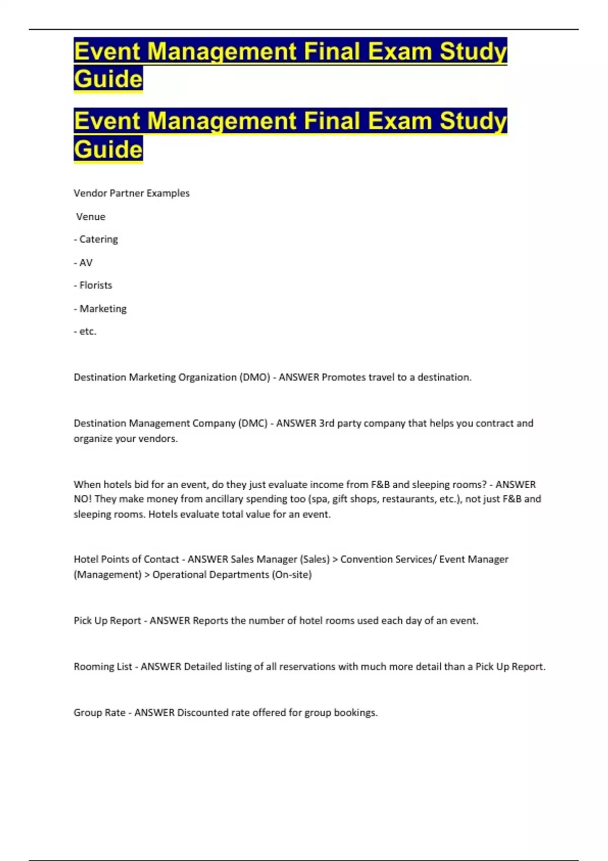 Event Management Final Exam Study Guide