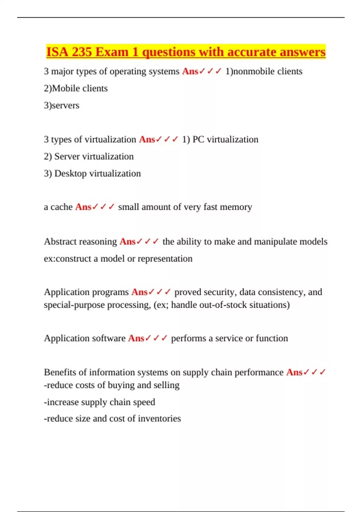 This document provides a comprehensive and verified glossary for ISA 235 Exam 1, covering all foundational topics in Management Information Systems (MIS). It includes accurate definitions and explanations for databases, cloud computing, virtualization, operating systems, ERP/CRM tools, SQL, business process modeling, Porter's competitive models, and supply chain principles. Ideal for exam prep at Miami University or other MIS-related courses.