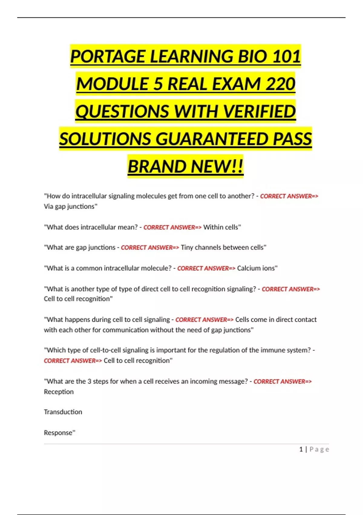 PORTAGE LEARNING BIO 101 MODULE 5 REAL EXAM 220 QUESTIONS WITH VERIFIED SOLUTIONS GUARANTEED PASS BRAND NEW!!