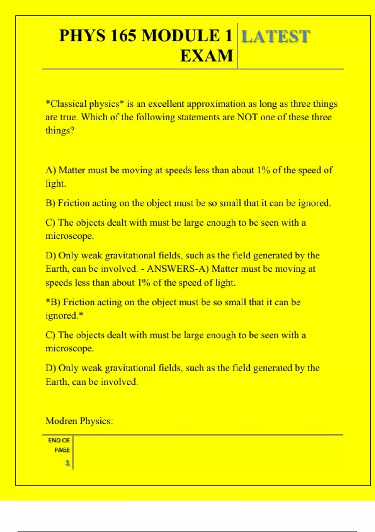 , PHYS 165 MODULE 1 LATEST