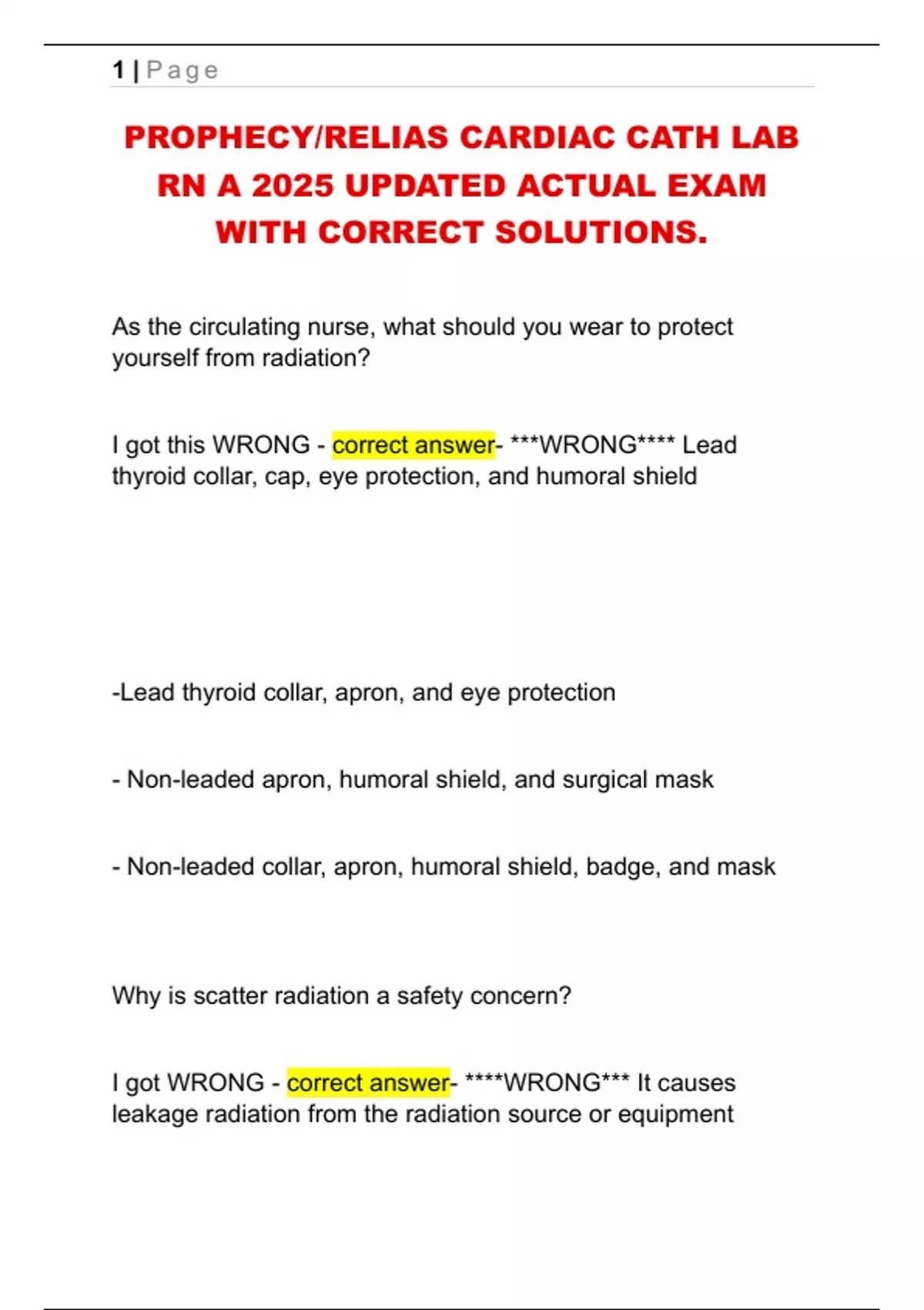 PROPHECY/RELIAS CARDIAC CATH LAB RN A 2025 UPDATED ACTUAL EXAM WITH CORRECT SOLUTIONS.
