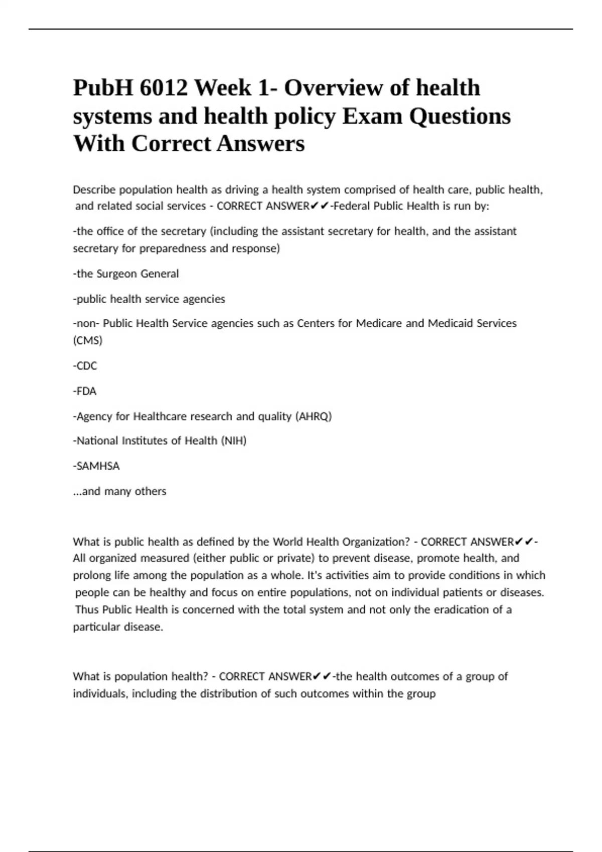 |and |related |social |services |- |CORRECT |ANSWER✔✔-Federal |Public |Health |is |run |by: |