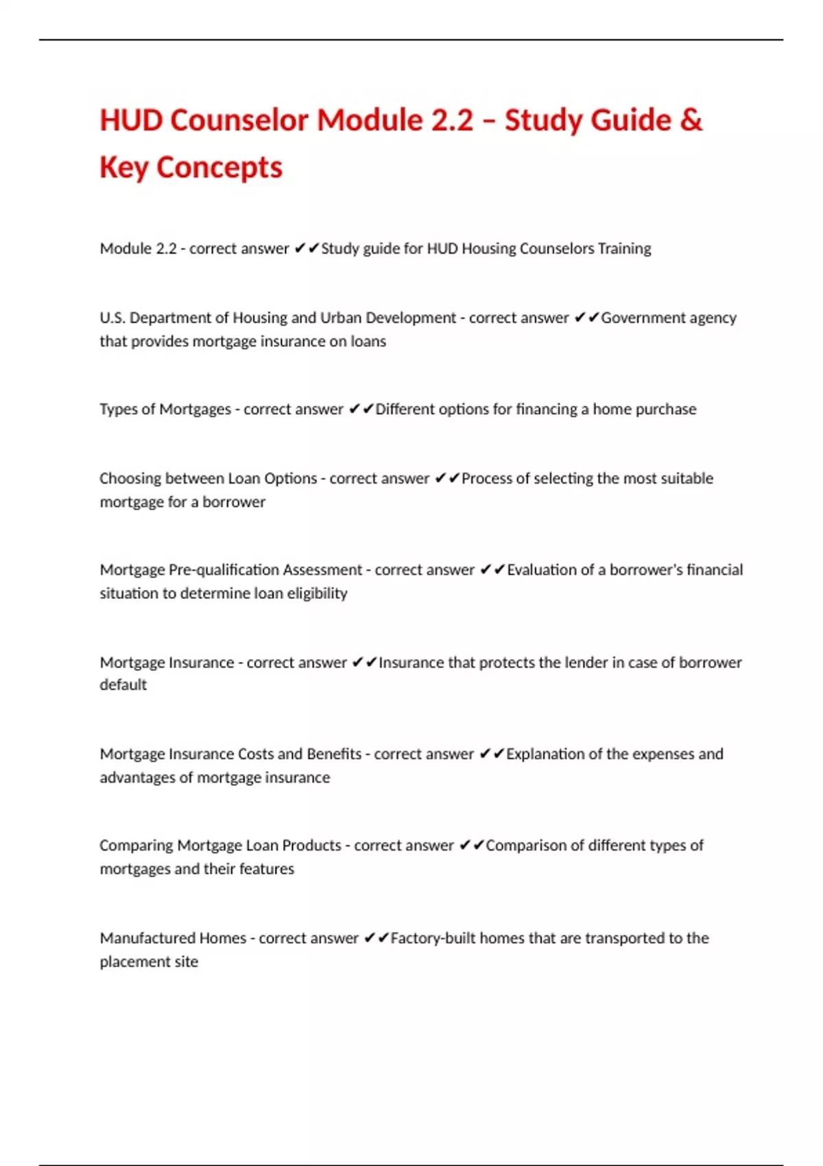 Module 2.2 - correct answer ✔✔Study guide for HUD Housing Counselors Training