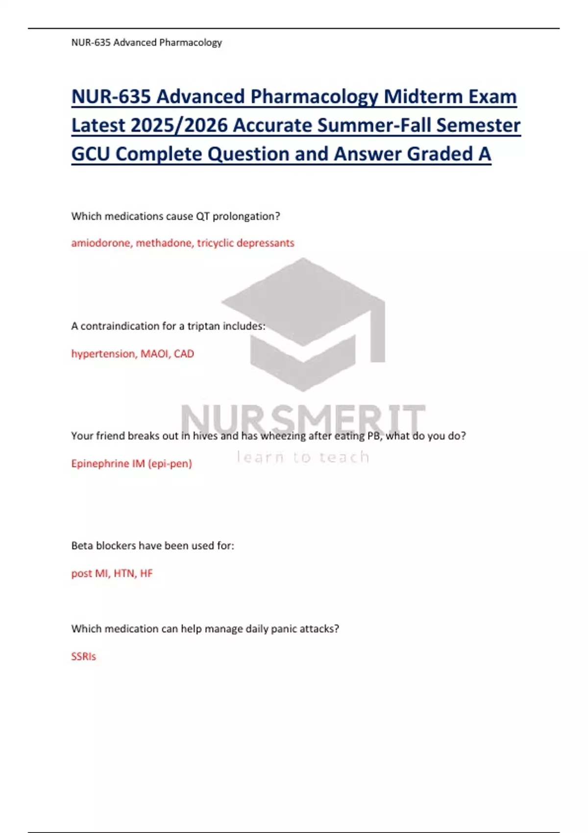 , NUR-635 Advanced Pharmacology