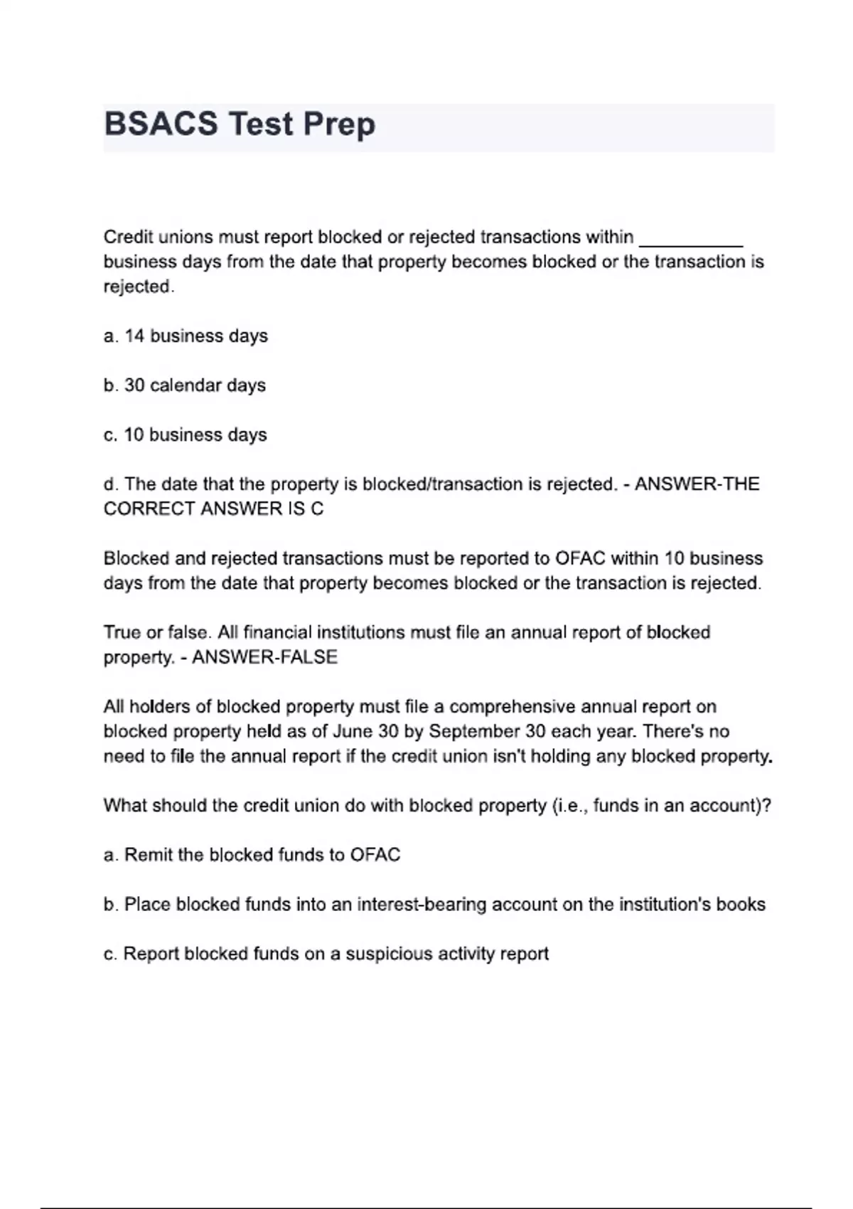 BSACS Test Prep questions and answers.
