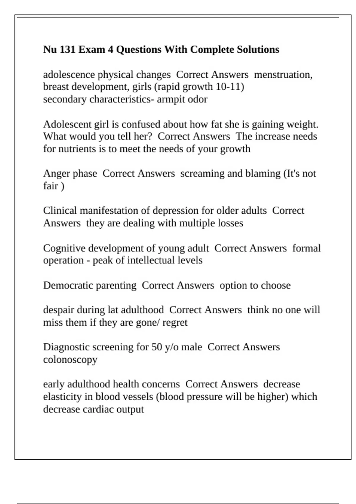 Nu 131 Exam 4 Questions With Complete Solutions